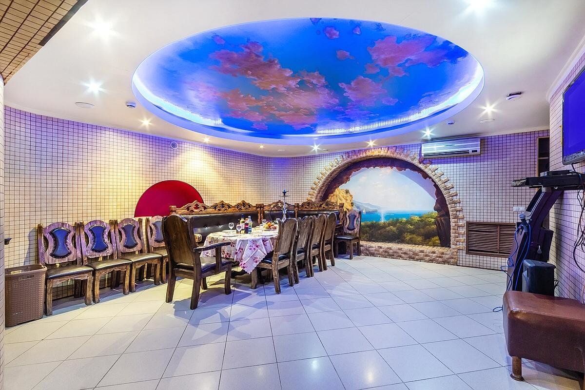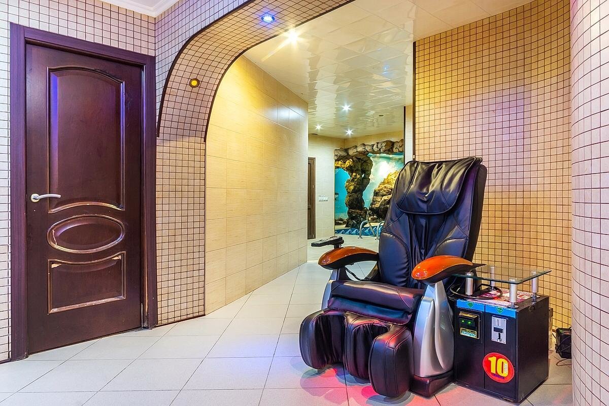 Не хочется в бассейн? Не проблема! Вместо этого можно провести время в нашей комнате отдыха. Мы постарались создать здесь комфортный, стильный интерьер из максимально натуральных, экологичных материалов, выбрать мебель, которая будет одновременно удобной и приятной глазу. Надеемся, что он придется вам по душе! Для создания настроения у нас есть кальян и караоке. Также у нас работает бар, где вы можете заказать блюда русской кухни, а если нужно, прийти и со своей едой - мы не против! Только не забывайте, что плотная трапеза непосредственно перед посещением парной - это не самая хорошая идея, согласно мнению врачей. А вот после парной - совсем другое дело!